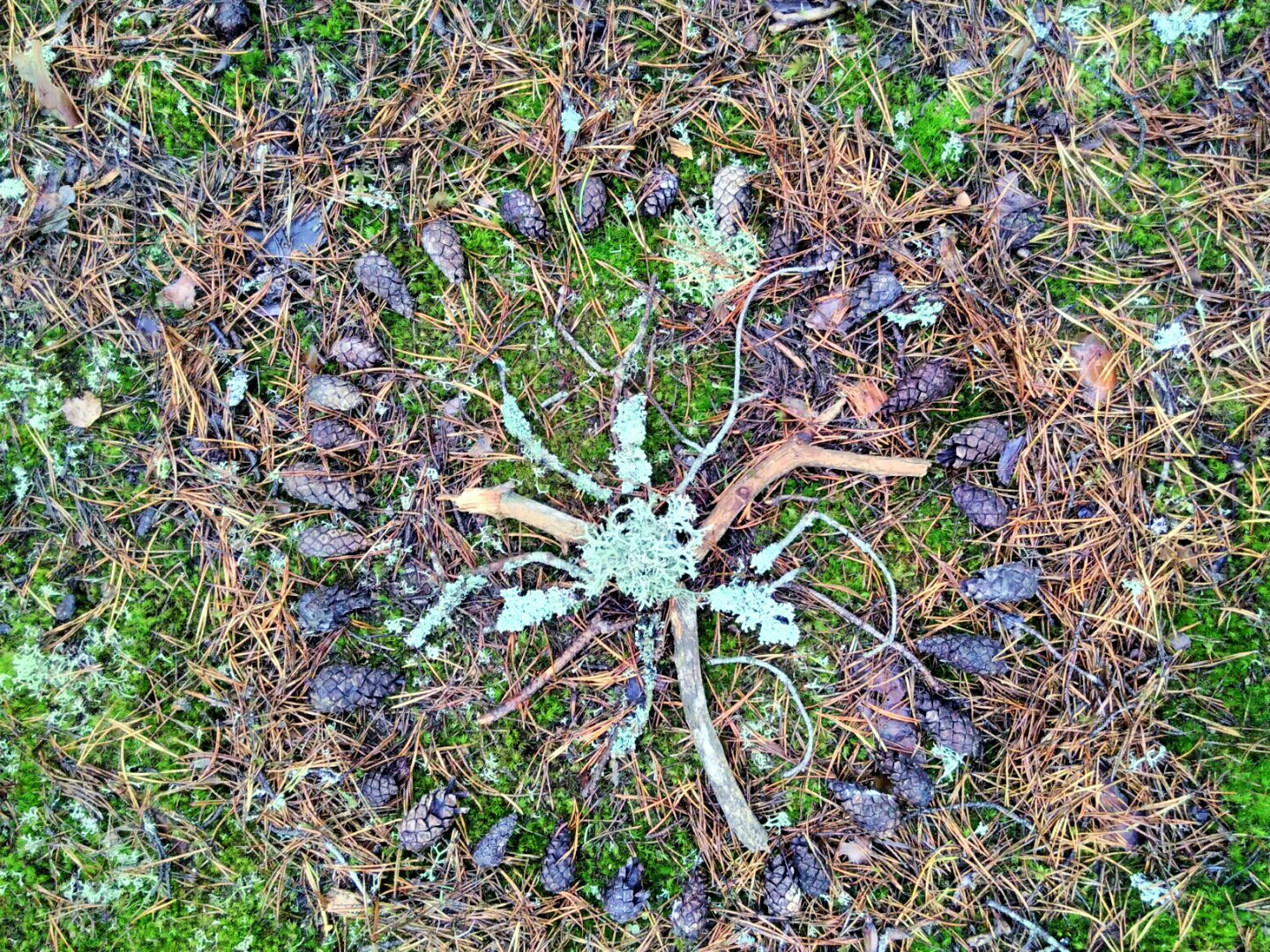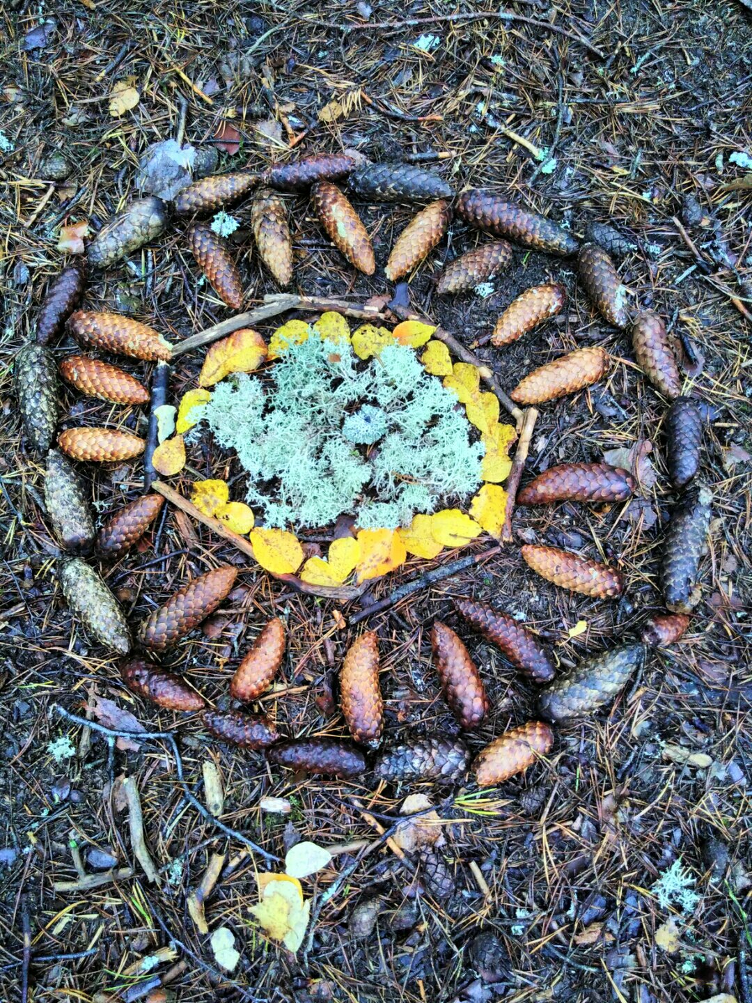 Mandala made out of pine cones, twigs, leaves and lichen (not made by me)
