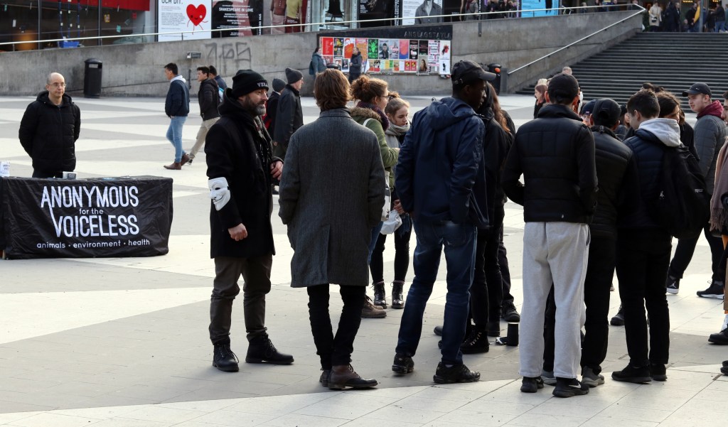 Today was my third time in the Cube of Truth with Anonymous for the Voiceless and my first time doing outreach.