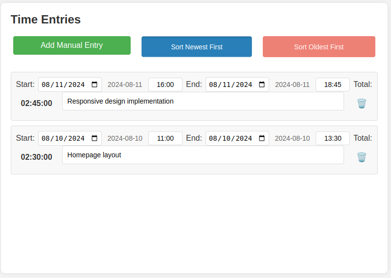 Sorting time entries by newest or oldest first